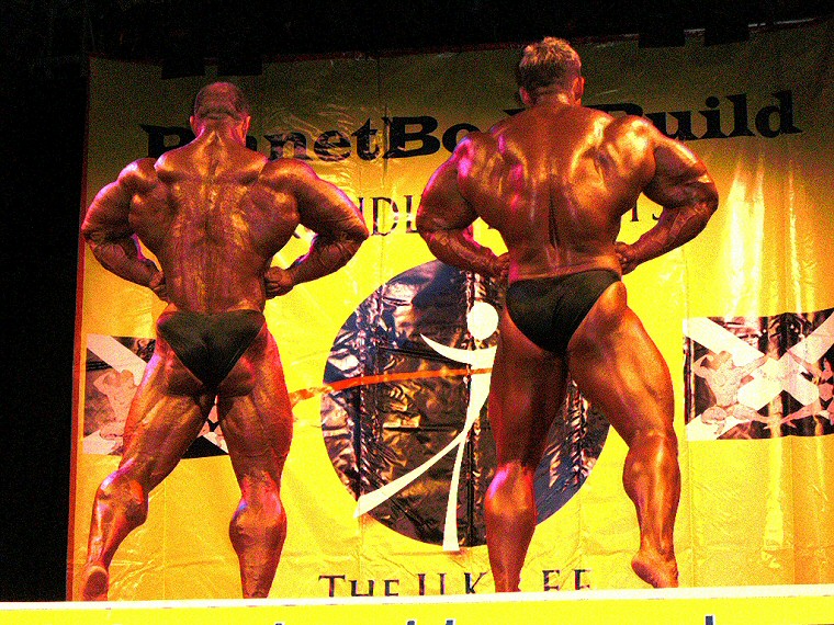 Stuart guest posing with fellow British super-heavyweight Darren Ball at the 2008 UKBFF Scottish Championships